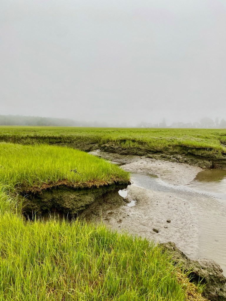 At the Rachel Carson National Wildlife Refuge, sight is a sense just as transient as the other four. Twice daily, tides fill the marsh channels with water that spills over the banks, flooding the grasses. Hours later, the water is gone, leaving swaths of thick, brown mud exposed. In summer, I see expansive green meadows meeting the blue horizon. High above are puffy white clouds, building taller and taller as the afternoon humidity threatens to produce a thunderstorm. Some days the fog rolls in so thick, I can barely see ten feet in front of me. In fall, everything from the trees bordering the marsh to the Salicornia in the mud flats changes color, following suite with the rest of New England as the days grow shorter and cooler. The marsh becomes a white landscape in winter where the tidal channels are filled with jagged chunks of ice that jam against the banks. Persistent emergent vegetation poke their heads up through the snow to remind me that spring will faithfully return. Every year it seems like an overnight transition, but one day I will look out into the marsh and see nothing but delicate, bright green grass.
