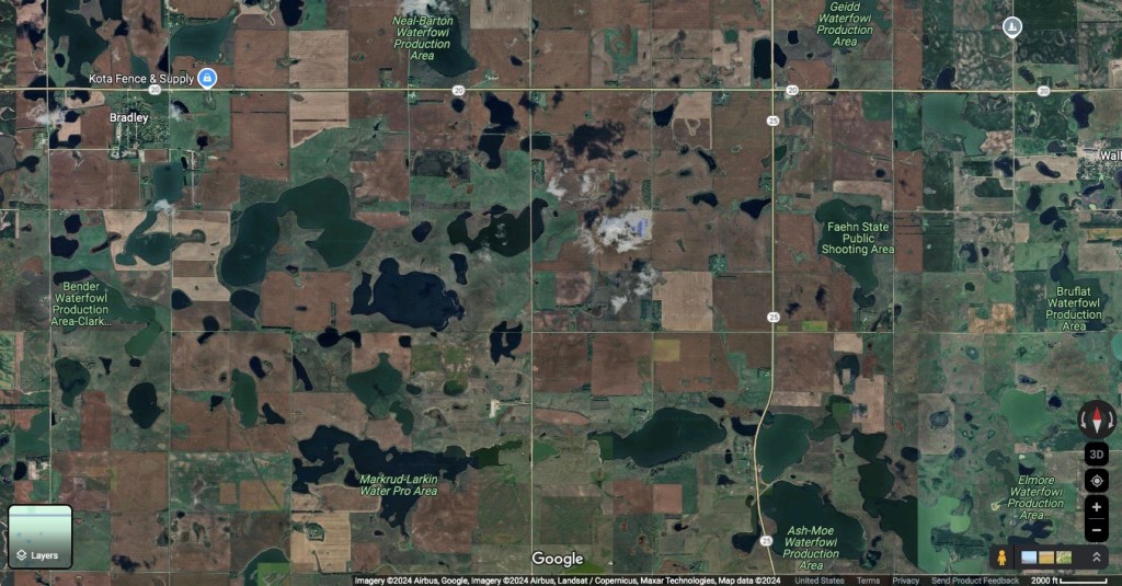A quick note on prairie potholes. As mentioned earlier, they are found in the midwestern United States. Though not a bog, they share some similar characteristics: both were formed by recent glaciation, they are isolated wetlands, and they provide important wildlife habitat. Unlike bogs in the northeast, however, prairie potholes make up an entire region in the Great Plains and are easily seen in aerial imagery in places like South Dakota.